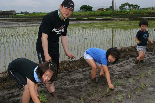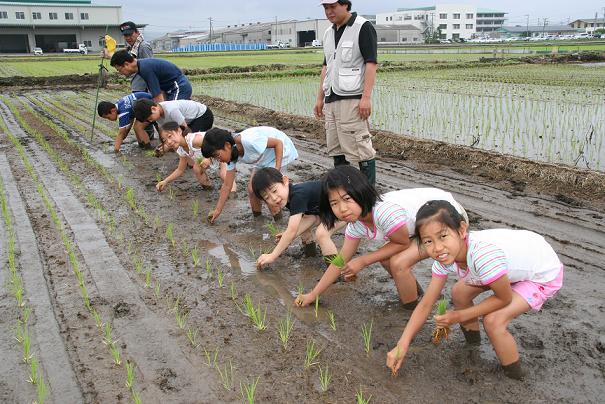 会富町の河野大介さんの水田(10アール)で田植えを体験しました。