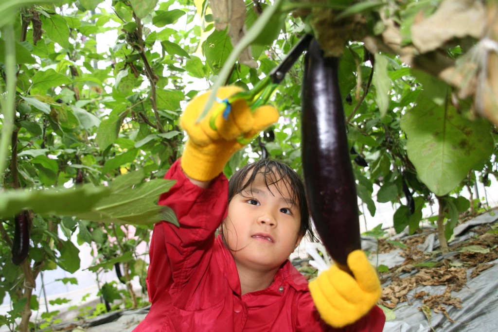 | 「私のだよ」と喜んで収穫するスクール生 |