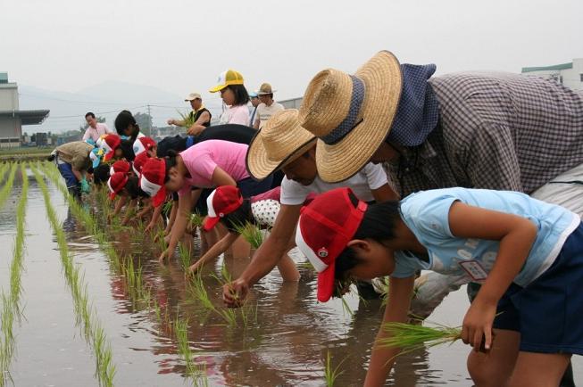 JA熊本市は6月27日、農業や食の大切さを学んでもらうあぐりキッズスクールを開き、児童51人が田植えと二十日ダイコンの収穫、スイートコーンの種まきを体験しました。