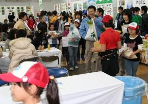 JAが初めて開いた「夢未来農業祭2010」のイベントであぐりキッズコーナーを出店。消費者や地域住民に朝採り野菜を食べてもらおうと、スクール生らは早朝から同市会富町のあぐりキッズ農園に出向き、JA青壮年部の協力を得て栽培した野菜を収穫。袋に詰め合わせたダイコンやブロッコリー、スティックセニョールなどを特設テント内に並べました。