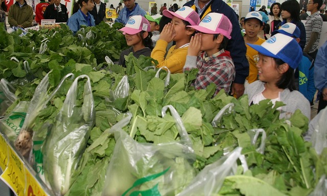 JA熊本市あぐりキッズスクールの児童約70人が11月17、18の両日、「夢未来農業祭2012」のイベントで自分たちが収穫した野菜を地域住民らに即売しました。