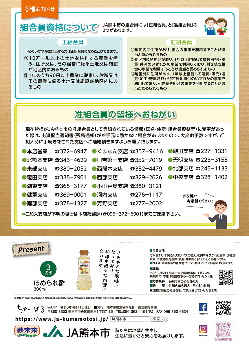 JAならではのお得な情報満載 コミュニティ誌「ちゃーばる」 |