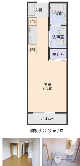 ■間取り 1R(洋) ■専有面積 27.98平方メートル