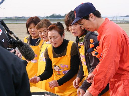 JA茄子部会女性部員ら手作りのナス料理として、4品の農家自慢料理も紹介。棒状に切ったナスを薄切りの豚肉で巻き、中華風にして味わう「なすロールの薬味ソースがけ」など、あくの少ない特長を生かした料理をリポーターに試食してもらいました。