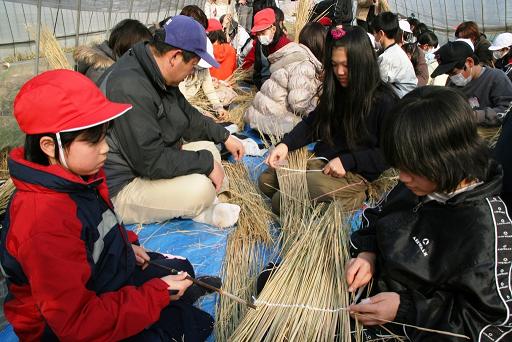 熊本市上南部の託麻北小学校4年生92人が2月5日、納豆を包むワラつと作りに挑戦しました。