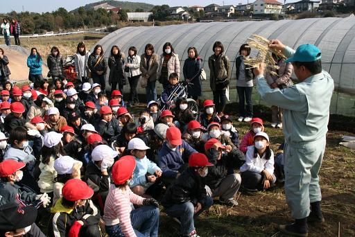 子どもたちに大豆の種まきや収穫体験などを通して農業への理解を深めてもらおうと、同市上南部で農作業を受託する ㈱アグリともあいが5年前から毎年実施しています。代表取締役の大津隆満さん(62)らの指導により昨年7月中旬、約12㌃に小粒大豆「すずおとめ」の種をまき、11月中旬に約200㌔を収穫。児童らはその間、除草など畑の管理にも取り組んできました。