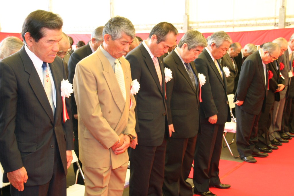JA熊本市柑橘選果場・次世代型選果施設の起工式が4月6日、同市河内町の建設地で行われ、JAや柑橘部会役員をはじめ地元県議・市議、行政機関や建築施工業者ら約100人が出席しました。極早生温州ミカンの出荷が始まる9月の稼動開始に向け、参加者らは工事の安全と施設の無事完成を祈願しました。