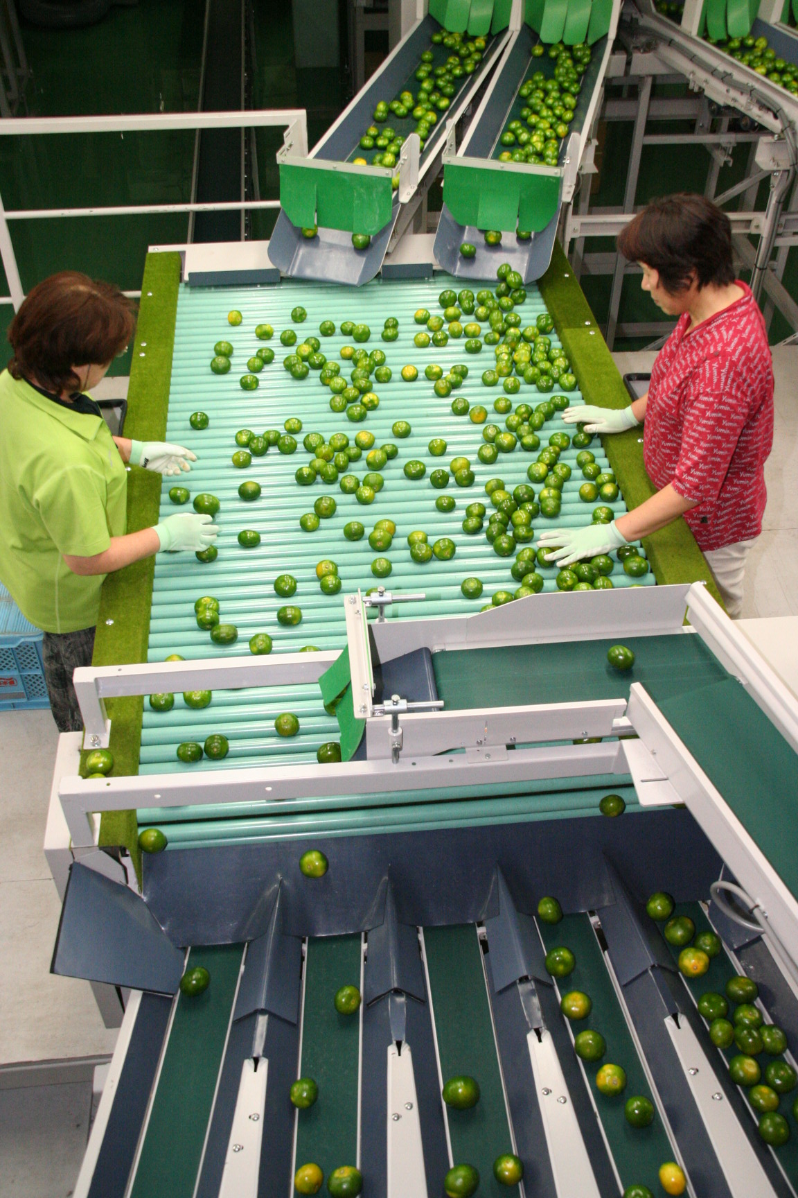 温州ミカンの極早生品種「肥のあかり」の選果が9月19日、熊本市河内町のJA熊本市夢未来柑橘選果場で始まり、導入したばかりの次世代型選果機で選果した約30トンのミカンを関東の市場を中心に初出荷しました。店頭初売りは21日。