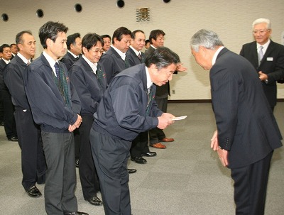 22年度共済推進総合ポイント目標の90%以上を12月末で達成した総合支店長らが、村上組合長から表彰されました。