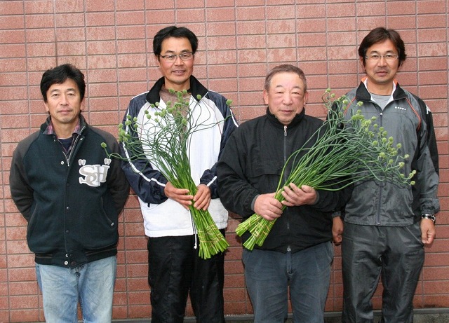| アリウムを生産する松崎部会長(左から2人目)ら4人 |