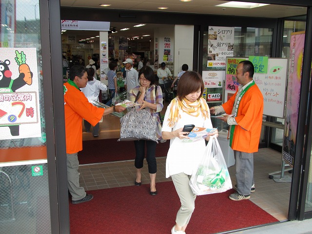 JA熊本市青壮年部は6月10日、you+youくまもと農畜産物市場で、環太平洋連携協定(TPP)参加反対の街宣活動をしました。街宣活動には、西冨大二朗青壮年部長を始め5人が参加。 九州各県の県青協委員が中心となり、一般消費者に対しTPP交渉参加反対への理解促進を図る目的で宣伝活動ではビラ配りや呼びかけ等を行いました。同部会の西冨部長は「断固反対運動を行っている」と消費者に呼び掛けた。