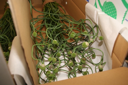 全国有数のアリウム産地である熊本市の西南地区で、「グリーンベリー」「ブルーパフューム」の出荷が2月23日始まりました。今年産は年末年始の天候不順により2週間の遅れですが、品質は例年以上に仕上がっています。