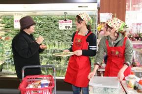 JA熊本市スティックセニョール部会は3月2日、同市のスーパー・マックスバリュ2店舗(西熊本・内坪井)で試食宣伝会を行いました。産地の生産者自らが味や栄養価の高さなどを消費者にアピールし、スティックセニョールの認知を広める狙いです。