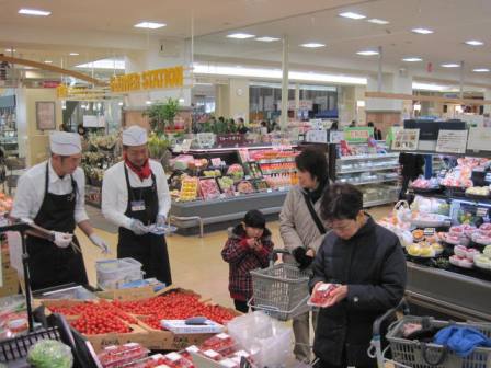 | 消費者(左)に美味しさをPR(3月2日、京都市で) |