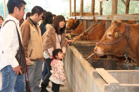 熊本県下益城郡美里町で都市農村交流イベントが4月13日開かれ、熊本市や県外からの参加者72人が美里町の自然、農畜産物に触れました。美里町外の消費者を対象に、生産者自ら町の農畜産物を提供し美里町のPRにつなげる狙いです。