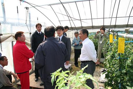 今月、行政に対し緊急対策の要望書を提出して窮状を訴えた同JA生産部会の代表者らは、当日の意見交換会で「昨年10月の集中豪雨により農作物の再定植や作型の変更を余儀なくされた中で、昨今の重油高騰などの生産コスト上昇が追い討ちをかけている。次年度の作付けすら危ぶまれる状況で、助成等何らかの対策を」などと訴えました。農水省の担当者は「法人として或いはリース会社との協同申請等なら対象となるが、基本的に国は個人補助ができない。広く助成するため過去に支払われた交付金等も考慮されてしまう」などと明確な回答は得られませんでした。視察に同行した林田彪衆議院議員は「今日の現状を踏まえ、知恵を出して何らかの方針を検討していきたい」と話しました。