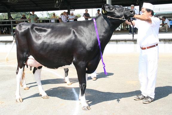 審査は、種馬(4頭)・乳用種牛(28頭)・肉用種牛(8頭)・飼料作物(12点)・堆肥(16点)の5部門で行われ、家畜の体積や品位、歩様などを県や関連団体の技術者らが厳正に審査しました。