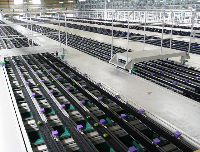 施設は、既存の鉄骨3階建てに計約2600平方メートルを増設。ミカンを電動リフトで下ろす自動荷受設備や、衝撃から守り採れたての品質を保持する「スローダウン式」フィンガーソーターのほか、箱詰め時にミカンに傷みを与えないスイング式自動秤量機や世界初の生キズセンサーを採用。品質を判定するより精密なカラーグレーダーと内部品質センサーも新たに導入しました。ミカンの選果・計測能力は日量約260トンで、総事業費約20億4400万円。