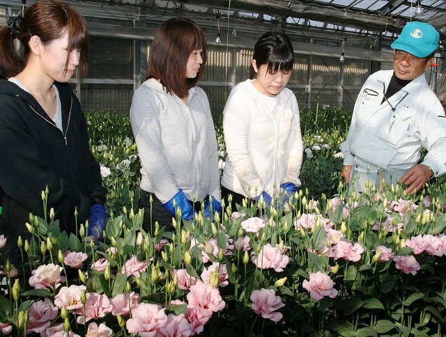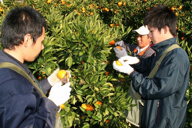 平成22年度新入職員25人が11月15〜17日と12月6〜8日に、管内の農家で農業を体験しました。農家および地域に密着した職員を養成しようとJAが平成16年から毎年実施。2〜3人一組に分かれてミカンやミニトマト、花などを栽培する9戸の農家で農作物の収穫や管理などを実習しました。