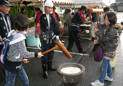 会場では地元消防団によるもちつきも行われ、地域が活気に満ちていました。