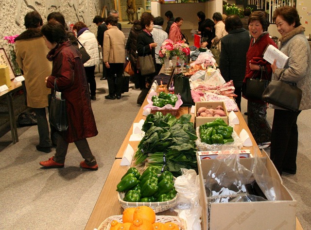 JA熊本市城山支店の第27回農産物品評会が12月11日、地域のスーパー・パディーマーケットで開かれ、丹精して育てた農産物を農家自らが即売し地域住民らとふれあいました。