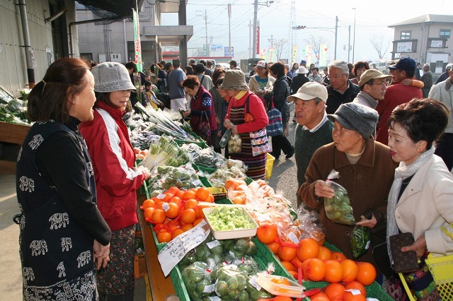 会場にはキャベツや玉ネギ、ネーブルなど約60種類の取れたて野菜や柑橘類をはじめ、漬物や団子、花苗なども数多く並びました。切り花を購入した同市海路口町の美容師、中村育代さん(52)は「作った人から直接買えて安心感があり、野菜も安くて新鮮だからありがたい」と話していました。