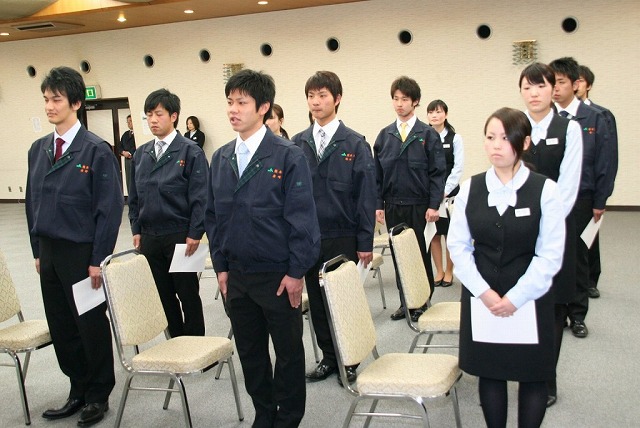 JA熊本市の入組式が4月1日、南熊本の本店で行われ、平成23年度の新入職員12人(男性7人・女性5人)が社会人としての一歩を踏み出しました。