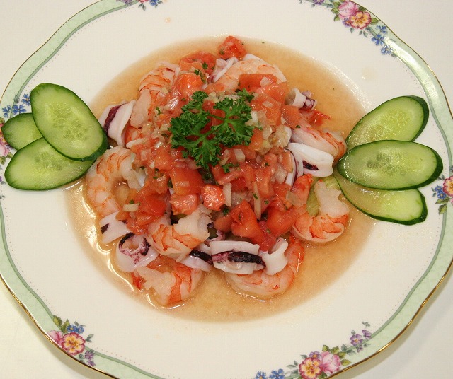 「なすと海の幸のサラダ〜フレッシュトマトソース〜」