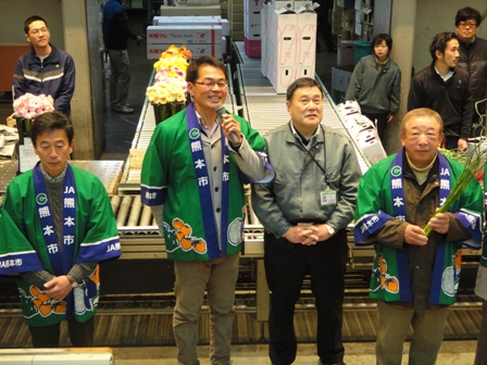 平成25年産は年明けから冷え込んだ影響もあり、1週間程度の生育遅れですが品質は例年以上。今年から、熊本グリーン農業の取組み(旧エコファーマー)によって出荷ダンボールにくまモンのイラストを掲載しています。