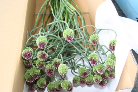 全国有数のアリウム産地である熊本市の西南地区で、アリウムの出荷が行われています。2月26・27日には今年度初出荷にあたり、大阪鶴見花卉市場でのセリに生産者らが参加しました。