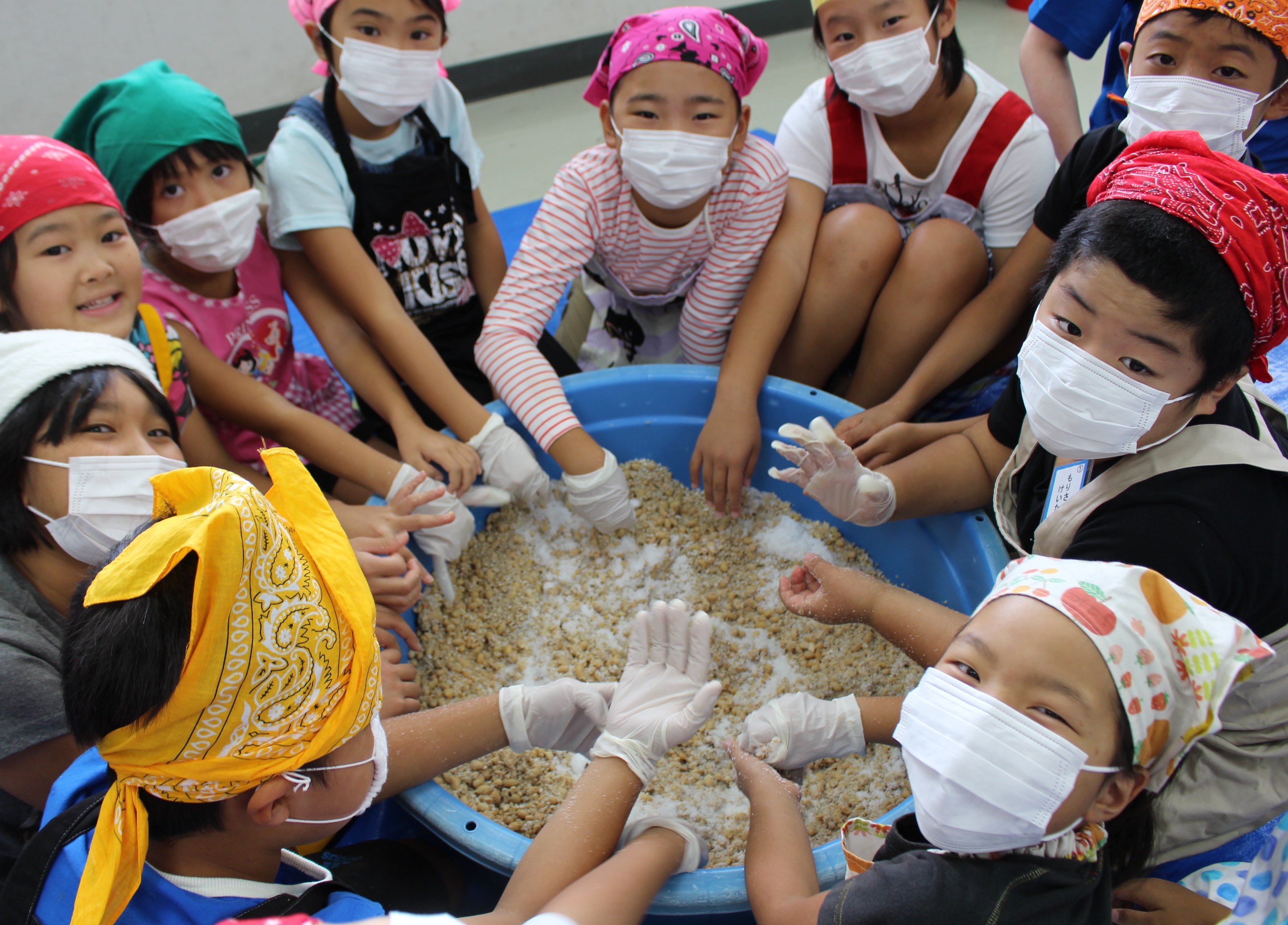 みんなで力を合わせて味噌作り