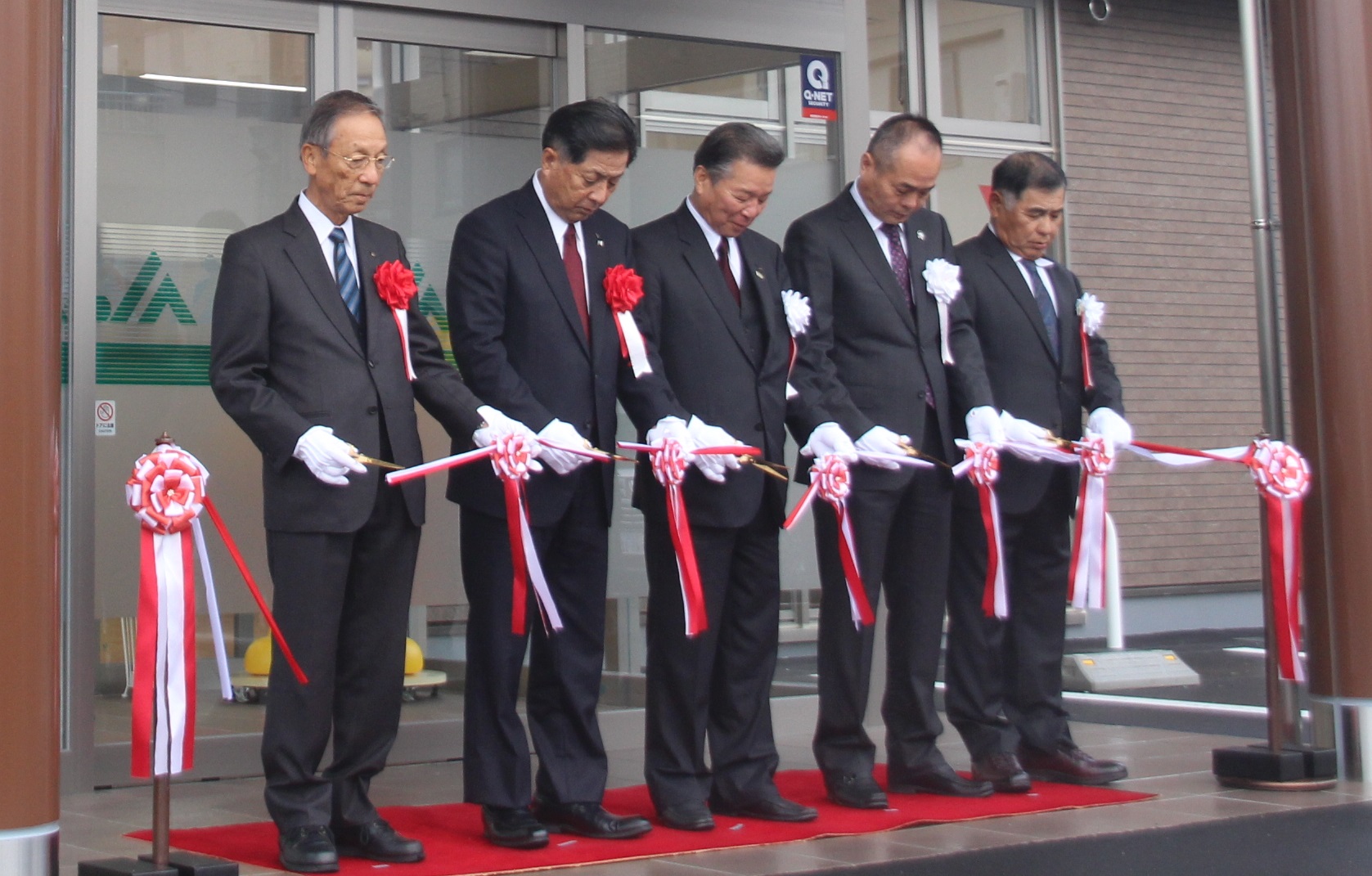 JA熊本市は、熊本地震で被災し甚大な被害を受けた健軍支店の新築を祝して11月27日、同市東区健軍で落成式を開きました。JA役員や同支店管内の組合員、工事関係者など約70人が出席。宮本隆幸組合長、JA熊本経済連加耒誠一会長らがテープカットしオープンを祝いました。