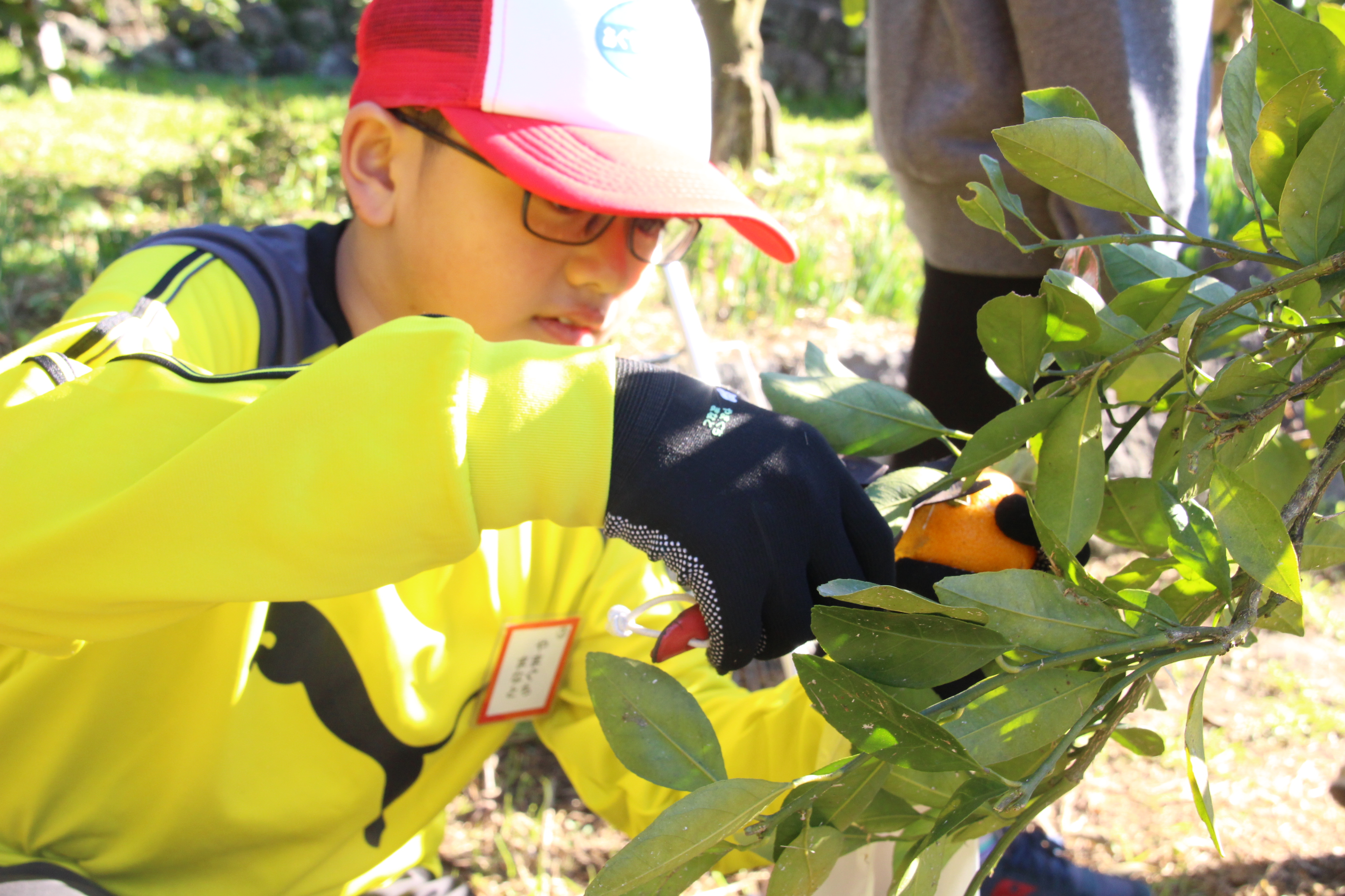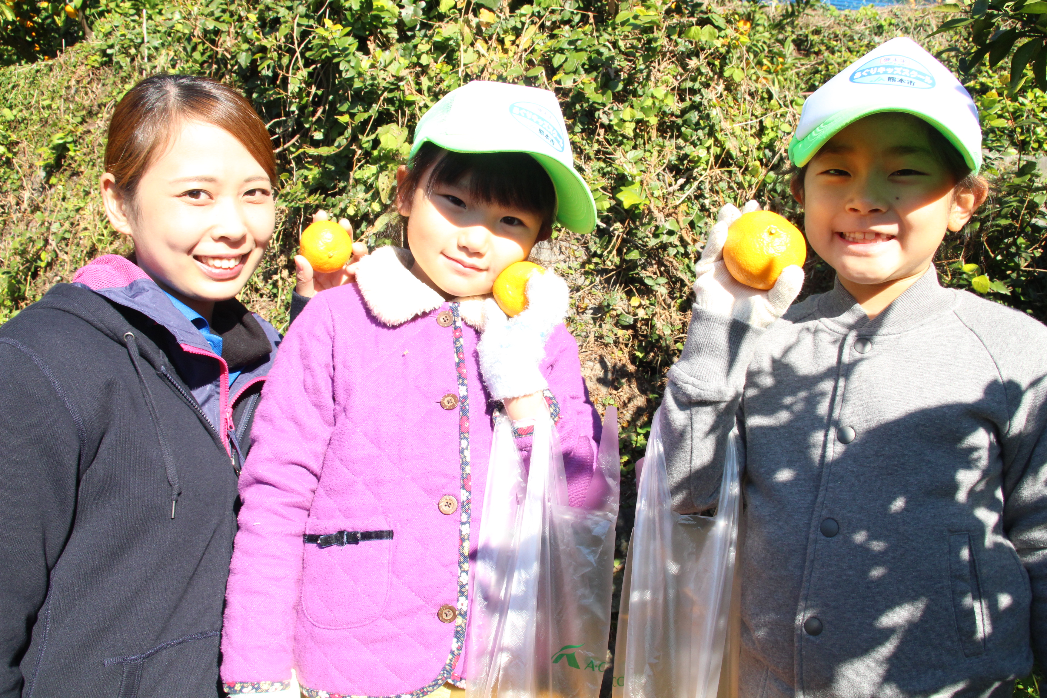 全国有数の温州ミカン産地である熊本市西区河内町にある有明オレンジ園を訪れ、ハサミを使って一つずつ丁寧にミカンを収穫。「美味しいミカンを見分けるコツは何か」など職員に質問をしながら体験を楽しみました。