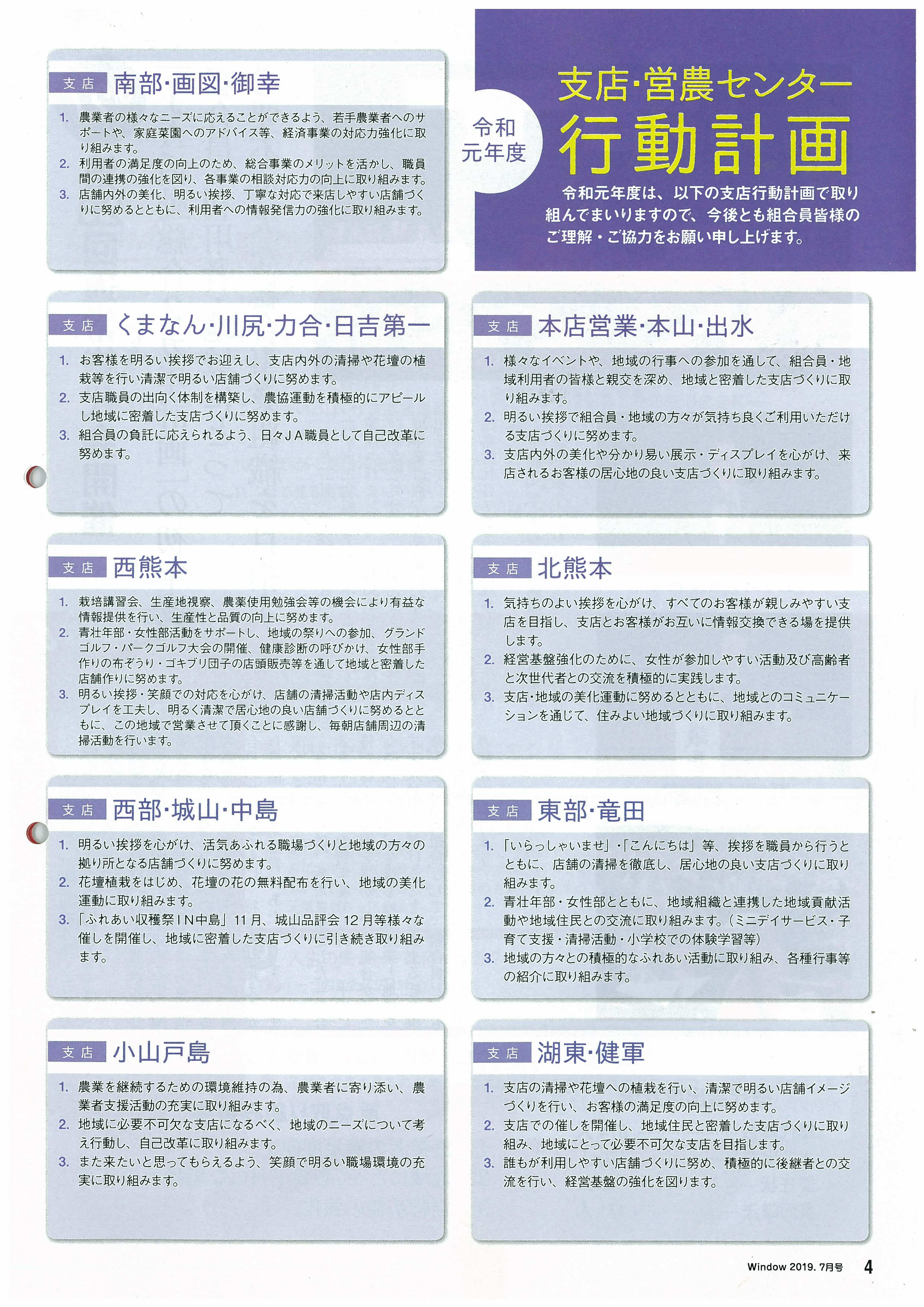 令和元年度は、以下の支店行動計画で取り組んでまいりますので、今後とも組合員皆様のご理解・ご協力をお願い申し上げます。